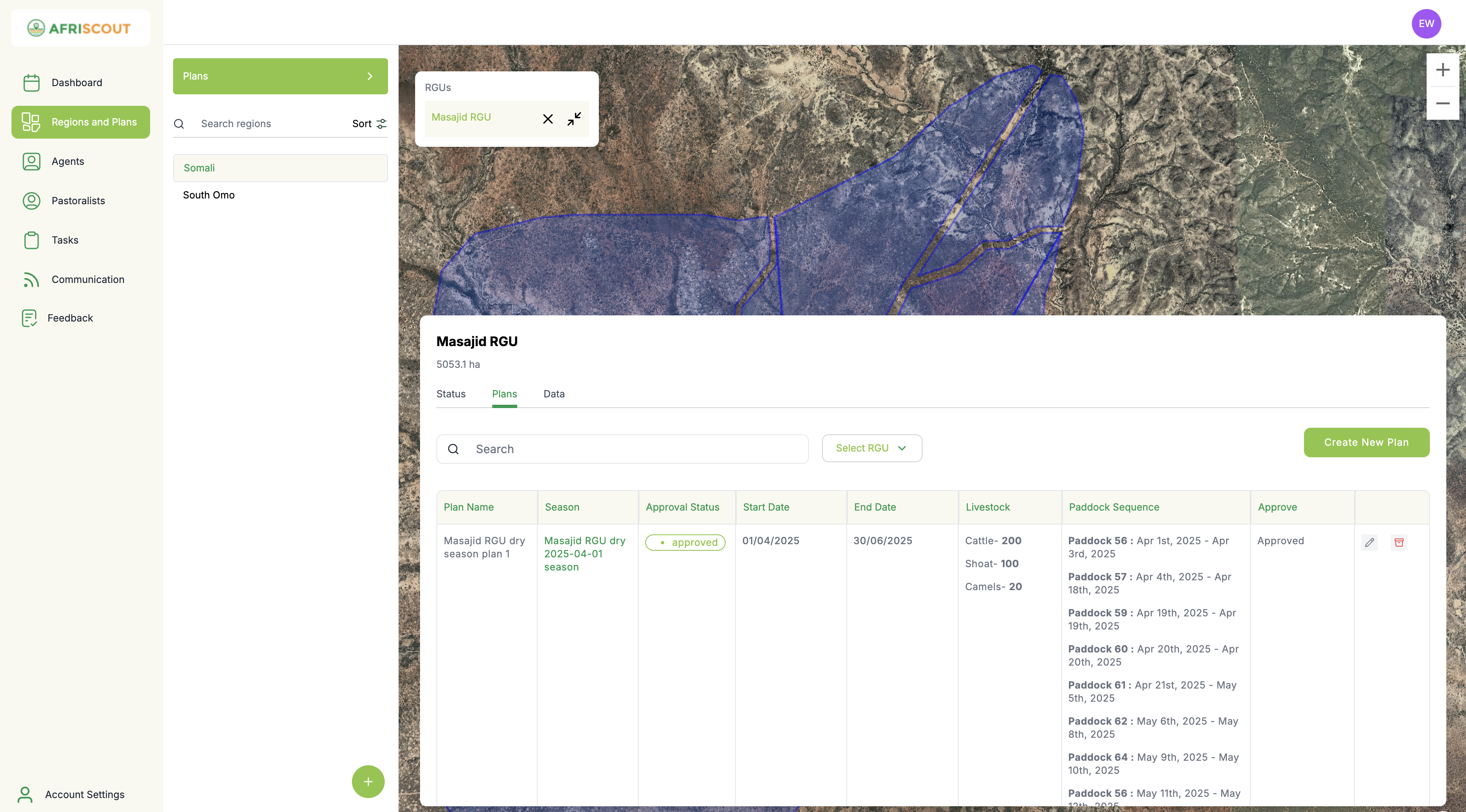 3. Select an RGU inside the area with the map to view its map and plans under it