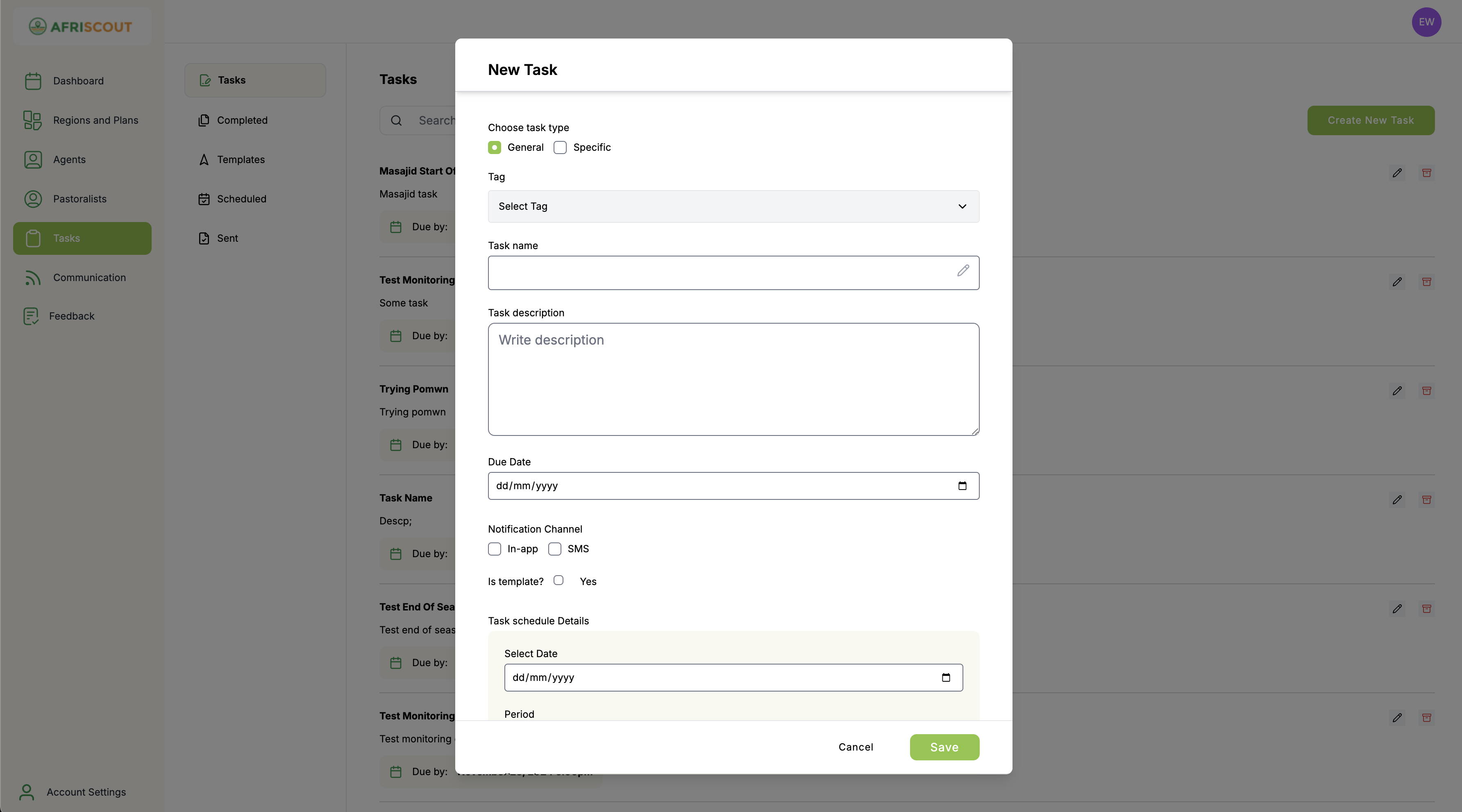 1. Select "Tasks" from the menu on the left, the list of tasks will with a map will appear with categories.